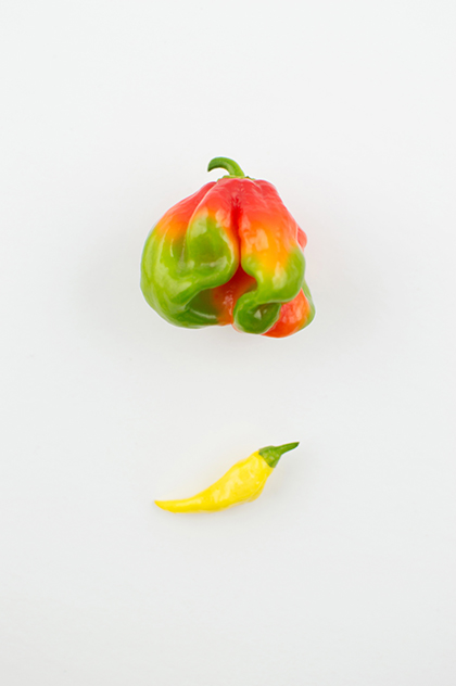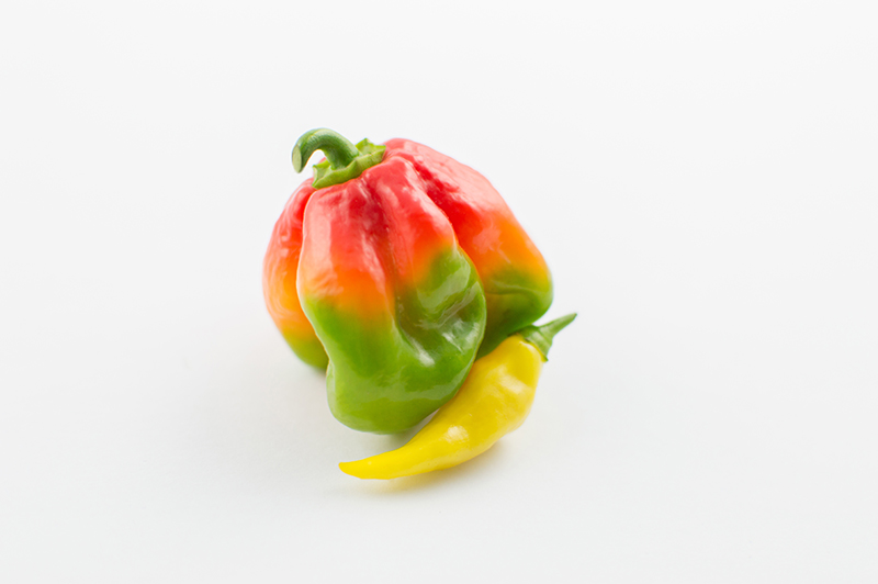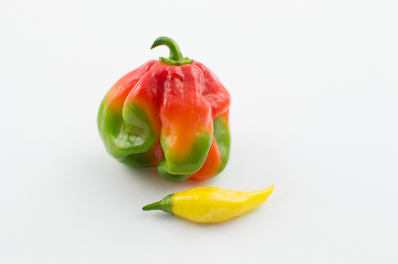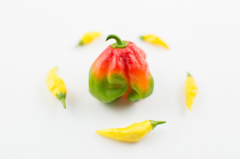 . I built my own lightbox! This is my first test shoot and I decided to take photos of hot peppers: a scotch bonnet and a few ghost peppers grown from the garden. I used two studio size lights on each side and white foam boards for the background. I’ll be create a new section for my product shots and try out different items & layouts! .